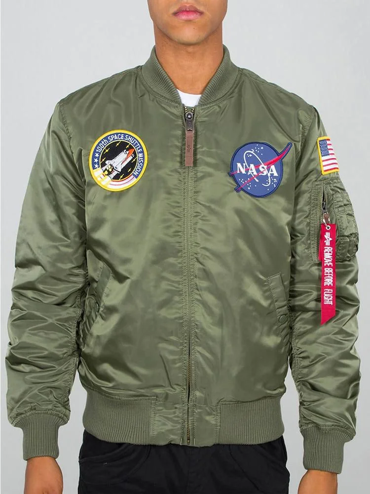 курткa-бомбер Alpha Industries MA-1 VF NASA в зелёном цвете.