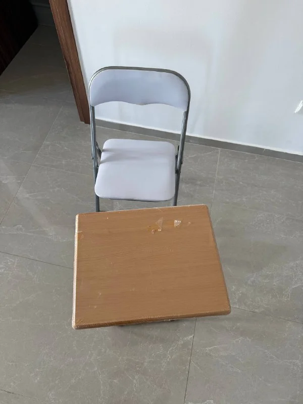 Складные стол и стул, покупала для съемки, не использовались, стол в пленке, но на стуле если порез от транспортировки.