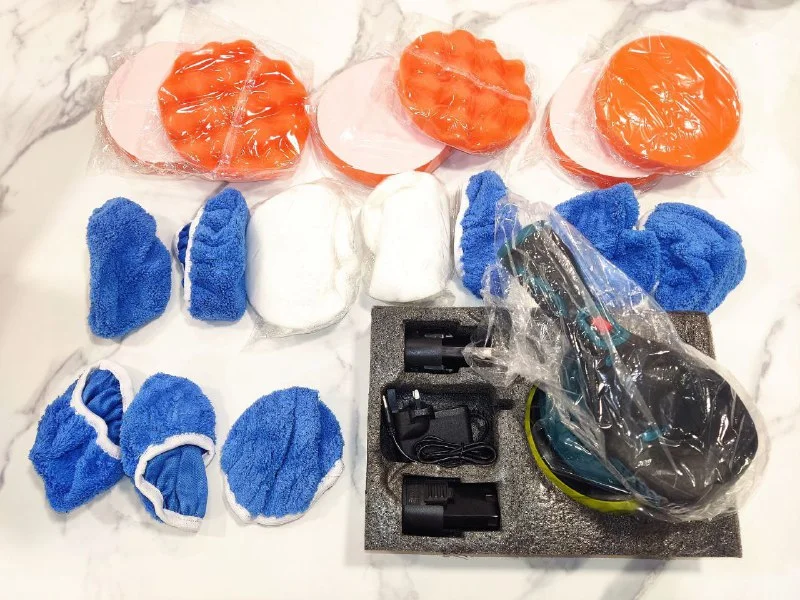 Новая в оригинальной коробке беспроводная wireless машина для ваксинга и полировки автомобилей c 18 насадками, 2-мя батареями и зарядкой. 8 скоростей, мощность 380W, Speed 2500 - 5000 r/min adjustable. Полностью переносной и независимый от стационарных розеток полировочный инструмент. Portable Car Waxing and Polishing Tool.