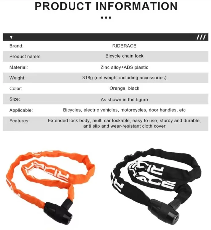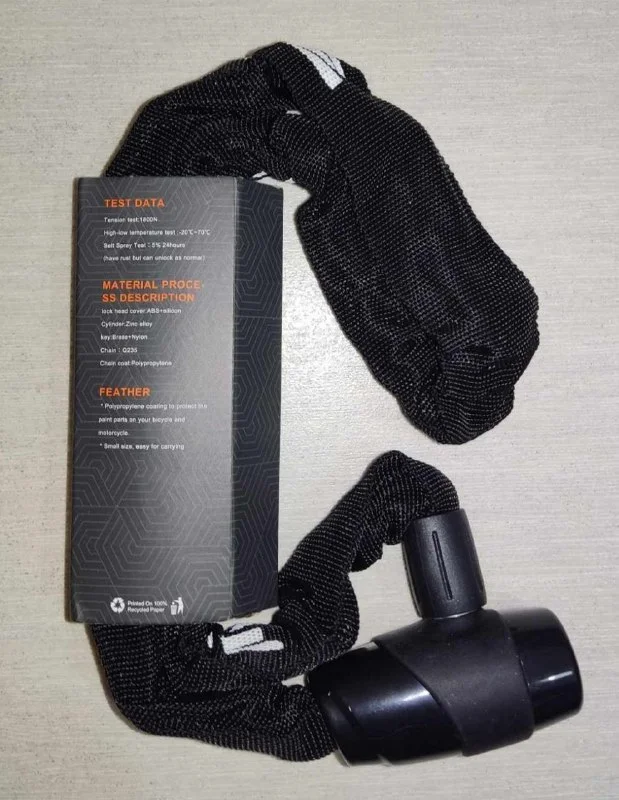 Новая в оригинальной упаковке 95 см противоугонная anti theft цепь с замком / цепной замок для велосипедов, мотоциклов, мотороллеров и скутеров, электрических байков и стеклянных раздвижных дверей. Производитель - RIDERACE.