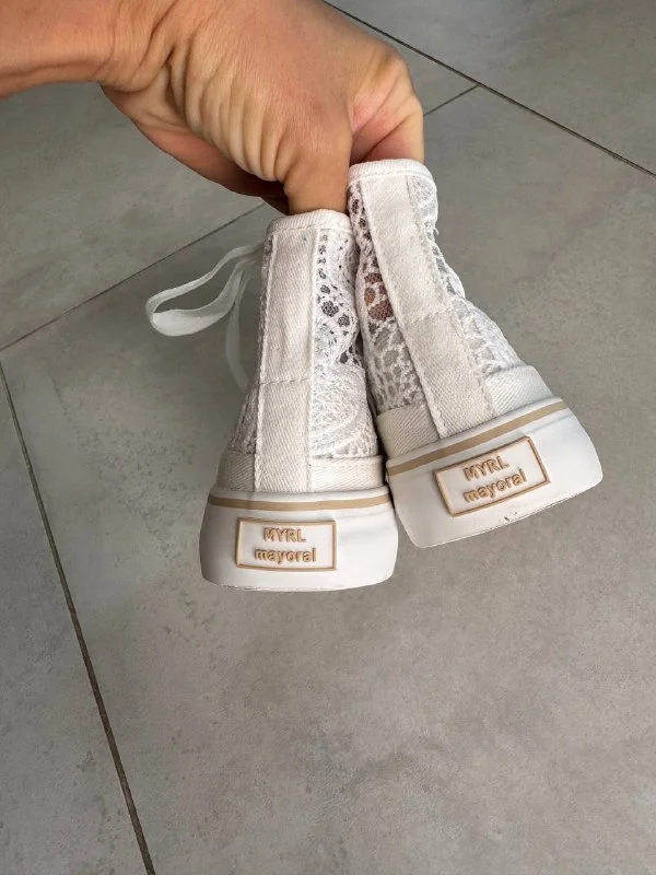 Кеды Mayoral в состоянии новых. Обуты ровно один раз в помещении. Очень красивые, с кружевом.