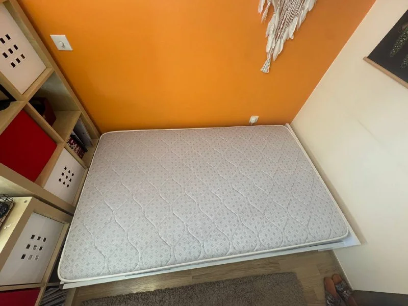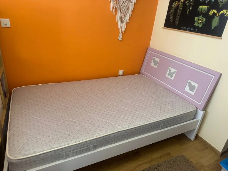 Б/у в хорошем состоянии, ничего не сломано, матрас без запахов и пятен.