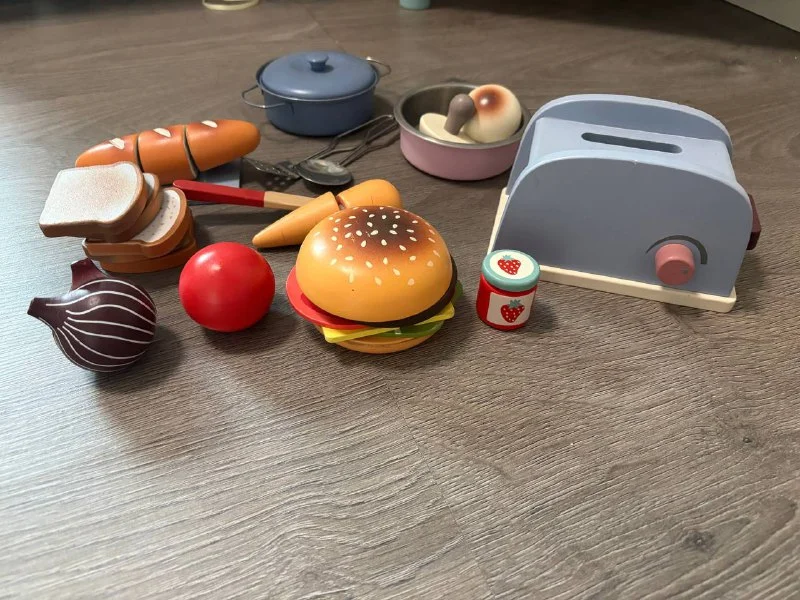 Деревянная кухня с набором продуктов и посуды. В отличном состоянии, в пользовании пол года.