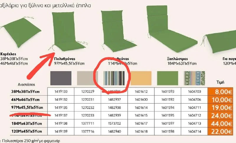 Пиргос (Limassol star). Продаю подушки для кресел. 97х45,5х50см. В использовании были не больше месяца. Чехлы съёмные, стираются. Подушки плотные, материал устойчив к выгоранию. 4 шт. 40 евро за все.