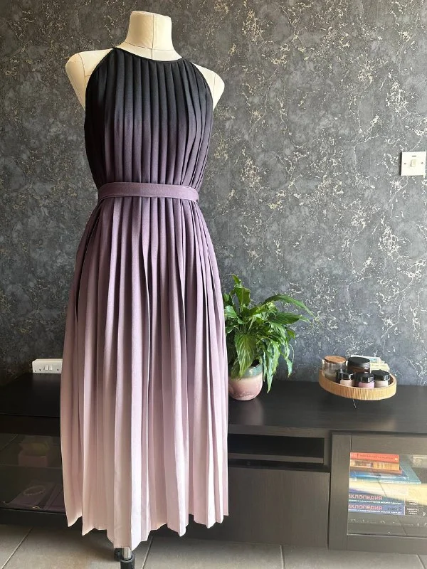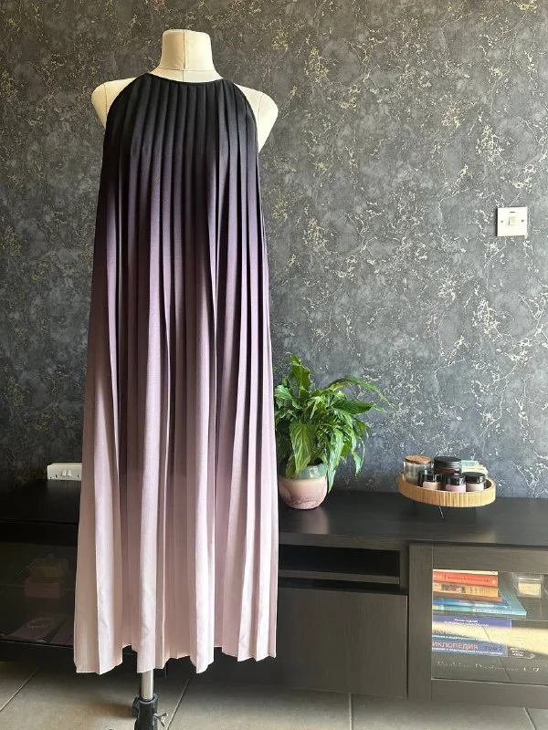 Тяжелая плиссировка, очень красивый градиент от цвета горького шоколада до холодного пудрового, на подкладке, тонкий тканевый поясок в комплекте