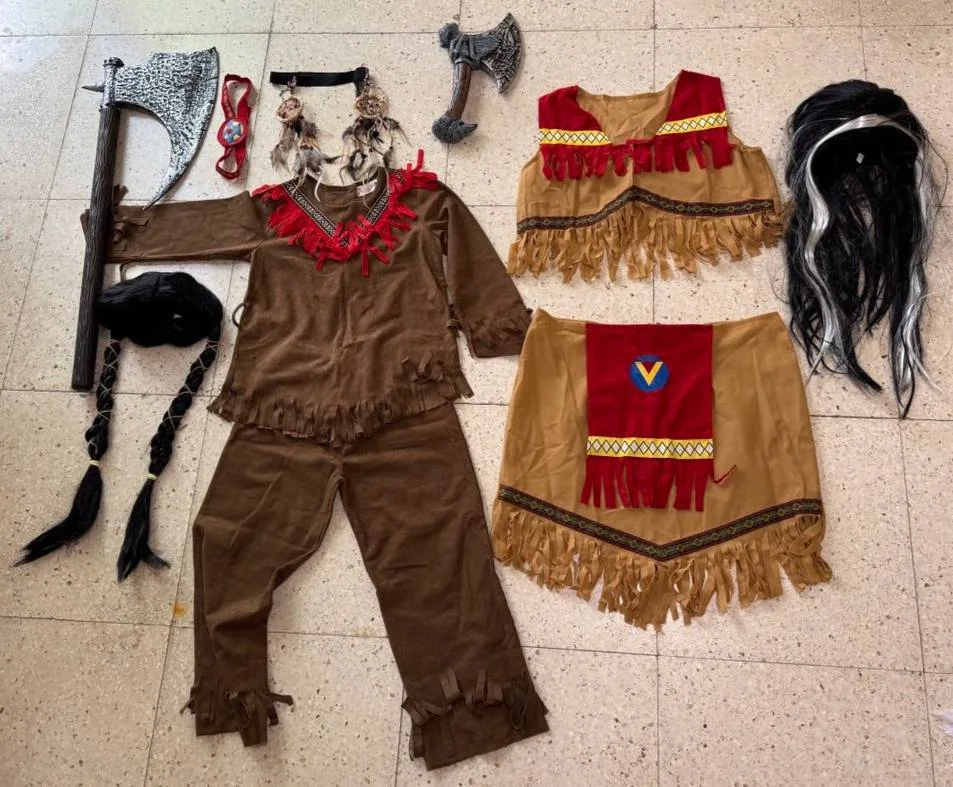 Костюм индейцев, слева детский (со штанами), топ и юбка женские, 44 размер примерно.