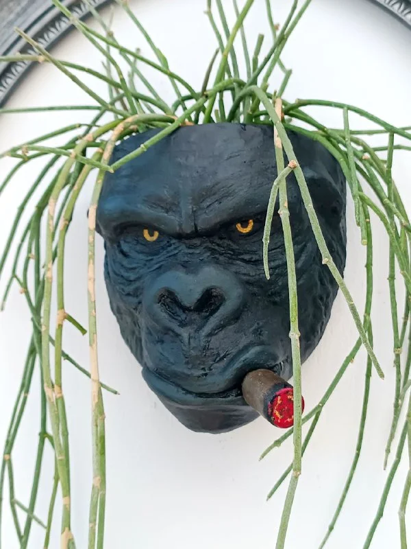 Взгляни в глаза дикому характеру! 🦍 Этот горшок-горилла с живым суккулентом — не просто декор, а настоящий арт с душой и харизмой. Сигара в зубах и "прическа" из зелени — такой аксессуар не останется незамеченным. Хочешь добавить дикой крутости в интерьер? Пиши в личку — этот зверь уже ждет тебя! 🌿🔥
