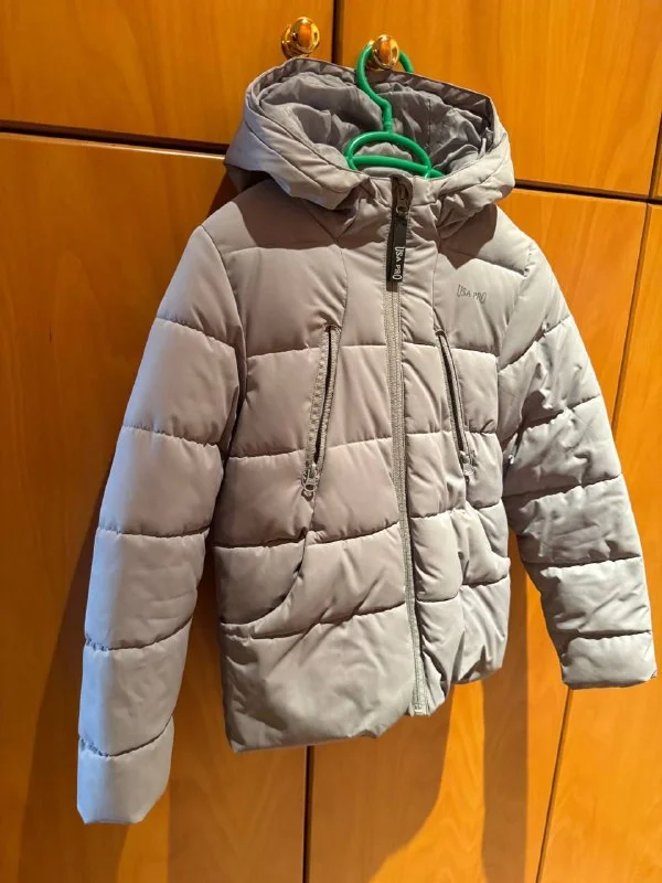 Серая теплая куртка (Англия) в новом состоянии,одета 1 раз на девочку 9/11 лет