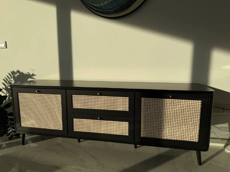 Тумба для телевизора стеклянная трёхуровневая