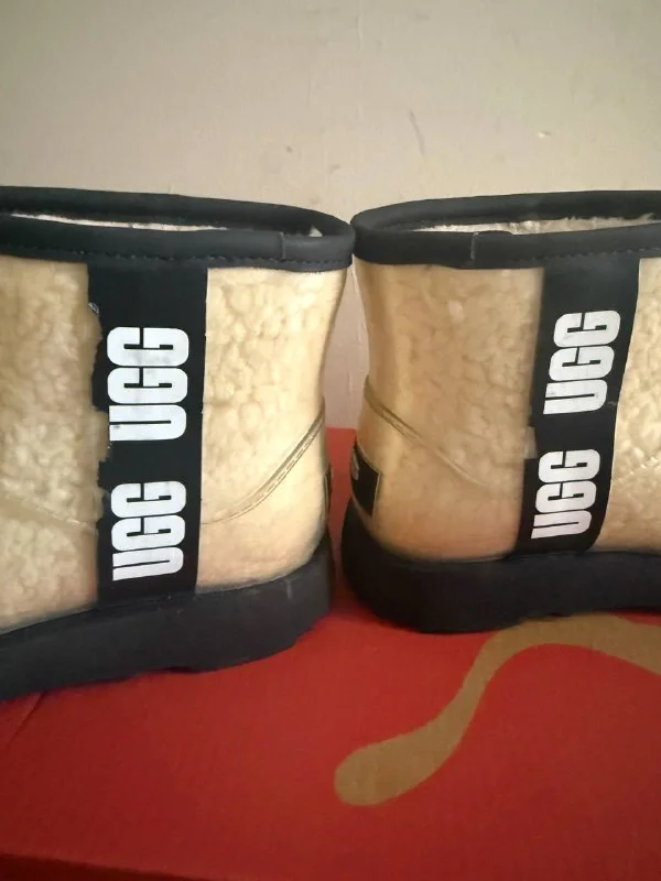 Состояние очень хорошее, натуральный овечий мех, непромокаемые, но поползла полоска с надписью “UGG”, дефект видно на фото