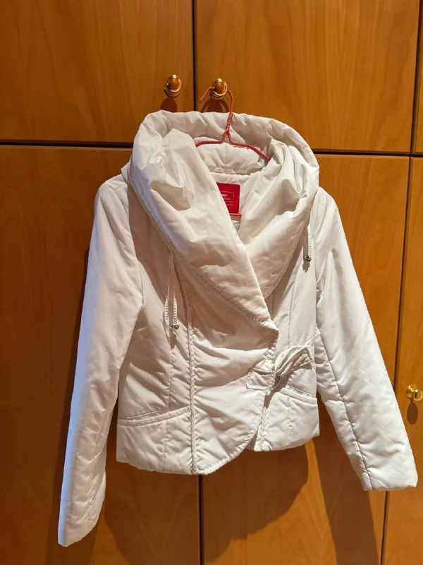 Белая пуховая куртка с капюшоном на размер S 30€