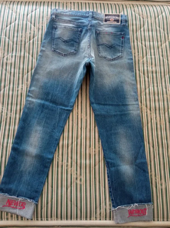 На правом кармане есть небольшая дырочка, в остальном в отличном состоянии, ребенок отказался их носить.