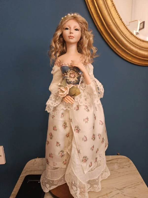 Авторская фарфоровая кукла "Незнакомка",автор я ,Марина Климина.Высота 47 см,хрустальные глазки,антикварное кружево ,вышивка корсета шелковыми лентами,на затылке клеймо МК. Ограниченный тираж (9/10).Кукла от скульптуры,гипсовых слепков,отливки,запекания ,декорирования изготовлена мною.350 евро.Лимассол