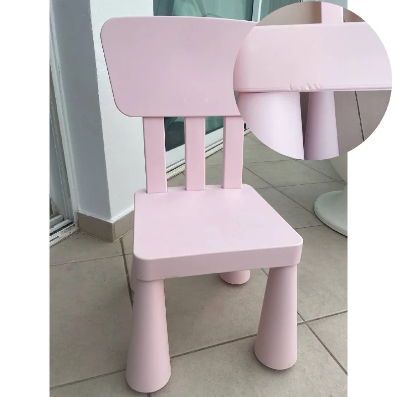 Детский стул ИКЕА в нежно розовом цвете (такие больше не выпускают). Есть косметический изъян (тщательно зашлифован - не цепляет и не царапает, на функциональность не влияет), колпак на одной ножке - белый, но его не видно совсем