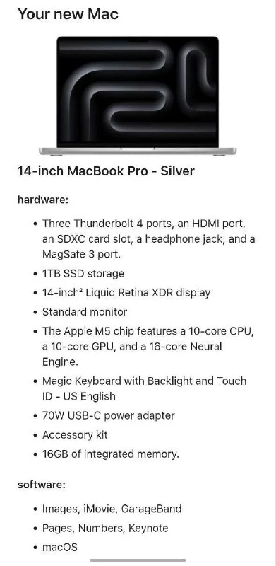 Продаю Macbook Pro 14'' M5 2025 16GB/1TB (A3434), новый, запечатанный.