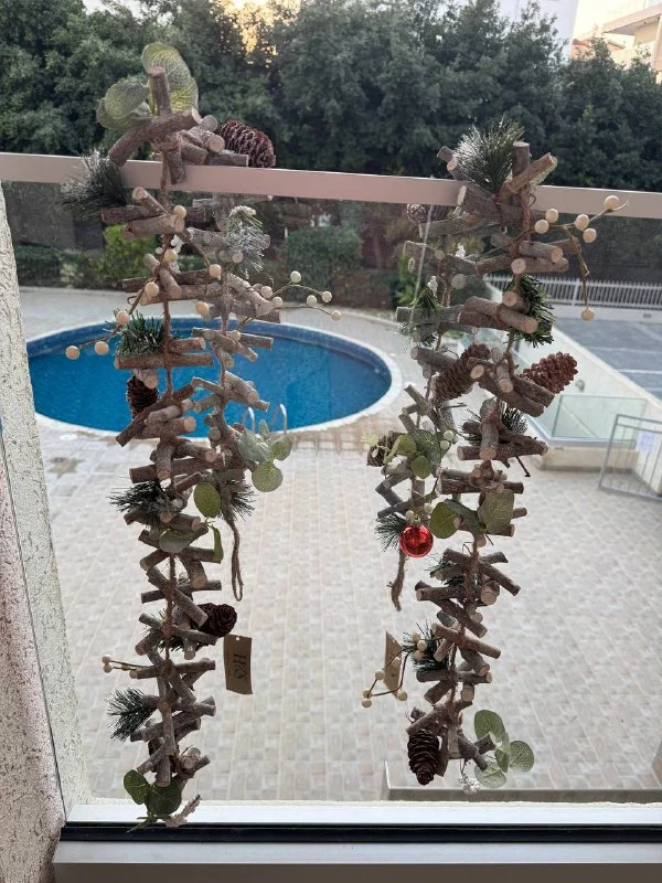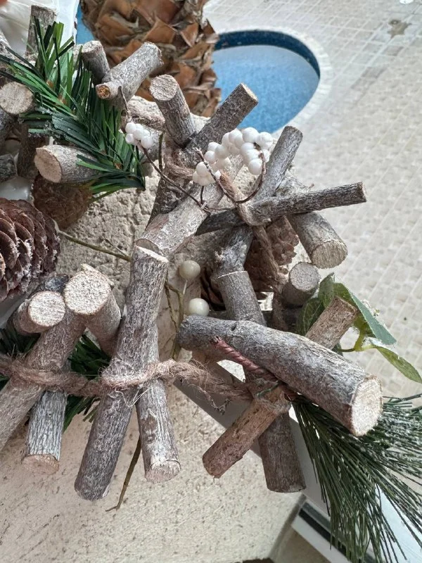 Декор на Новый год , тяжелые «гирлянды», из натурального дерева.