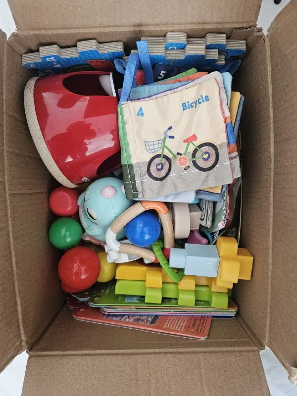 В подарок при покупке всего сразу — коробка с игрушками для малышей до 1 года и тапочки мозеркер.