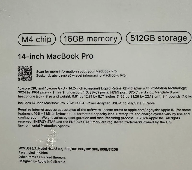 Продаю MacBook Pro 14″ (M4 / 16GB / 512GB)