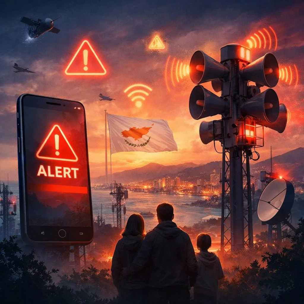 Сегодня примерно в 19:00 на Кипре проведут тест новой системы оповещения. Всем пользователям мобильной связи на острове придёт пробное SMS-сообщение. Также в это же время, вероятно, будет проверена работа сирен гражданской обороны.