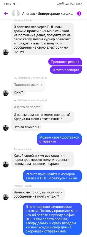Мошенник, схема с DHL