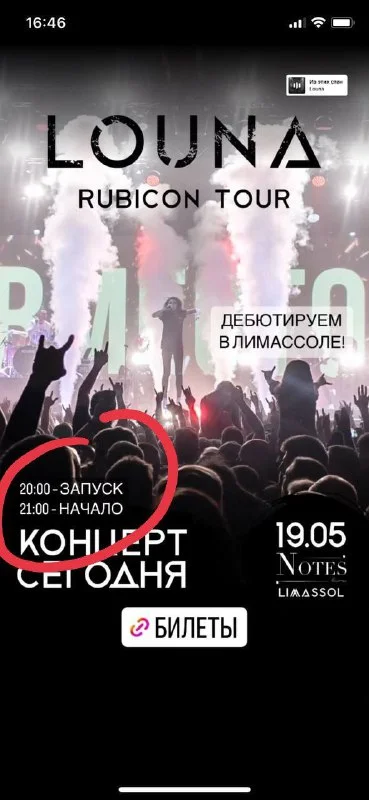 Леш, именно так! По плану двери в 20.00, старт 21.00, как написано у Louna