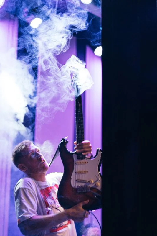 У нас гитарист опять выпадет с плечом (