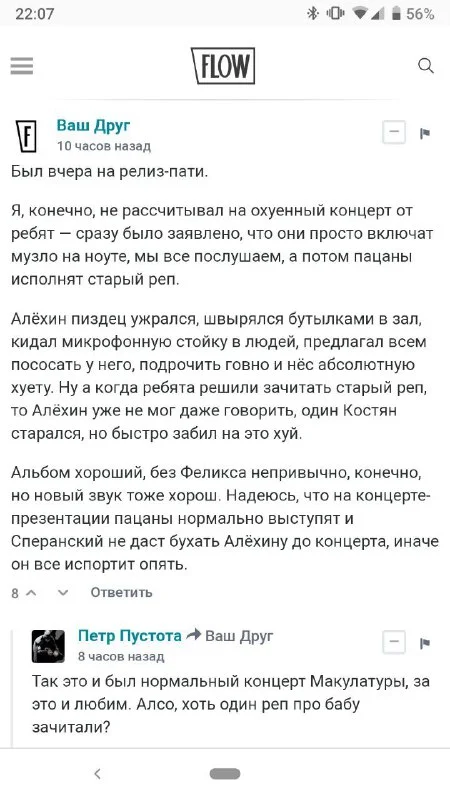 А оскорблять зал со сцены - почему на сборной солянке все должны понимать, что это норм? Например, мои коллеги и семья, которые отдали по 15 кровных, чтобы послушать "теплое ламповое муз коммьюнити"