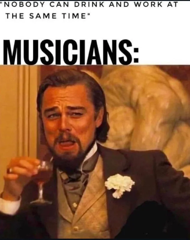 У меня куча историй, связанных с духовым оркестром) «по полтишку»,«кирять-бирлять» и т.п.) старики трезвыми вообще не были, а в залах перегар въедался в стены. По началу даже забавляло, но мое поколение явно слабее в этом плане) Где бывалый выпивал чикушку пшеничной водки перед выходом или репетицией, мы выпивали 250 коньяка на пятерых, ибо играть адекватно не могли после их объемов) А деды наоборот)