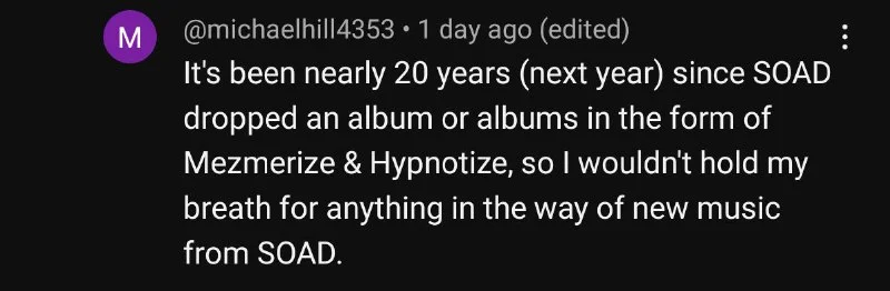 Ну вот Toxicity до Москвы оперативно добрался, я с него и начал их слушать back then in 2001-2 😁 и тут немного в другом мысль, вроде по соцсетям так и не устали вопрос реюниона их обсуждать, а группы уже (поколение) лет нет.