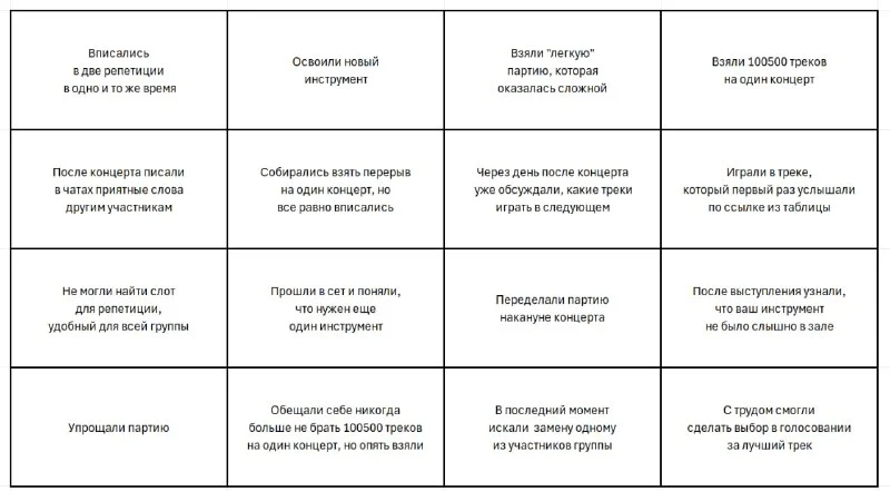 я тут сделала анти-джем бинго в тоске и печали по вам