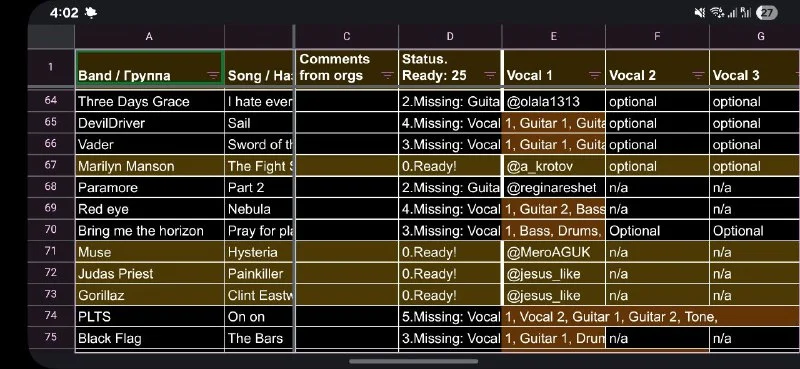 Нам нужны гитарист и басист в строчк...