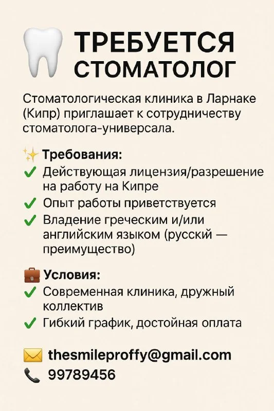 Работа Кипр Вакансия / Cyprus Work