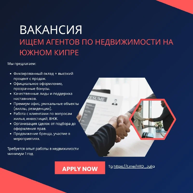 Ищем в команду агентов по недвижимости в новые офисы нашей компании в городах Ларнака, Пафос, Лимасол: