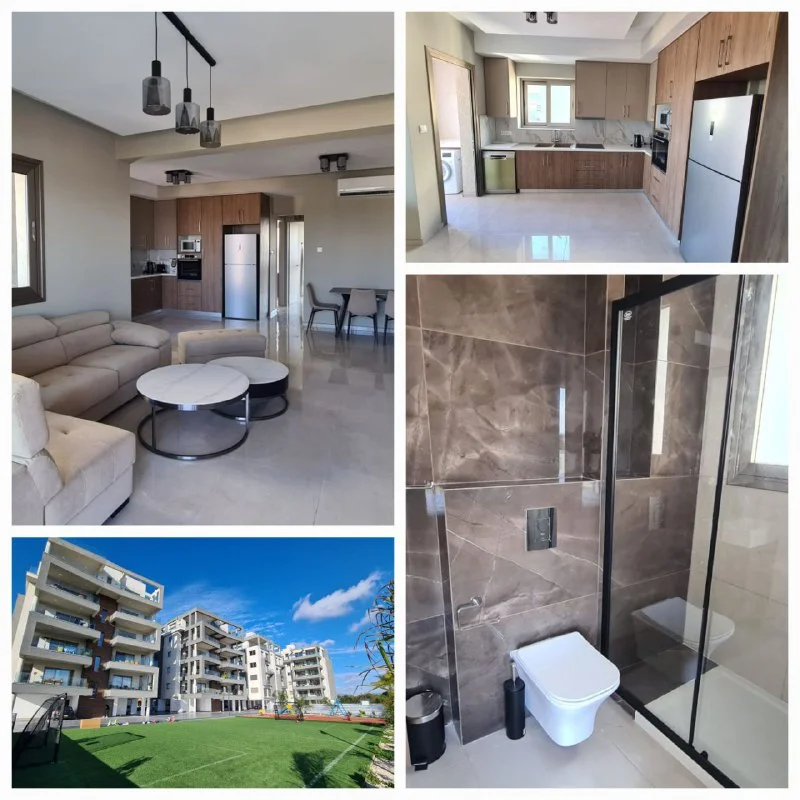 Впервые сдается новый апартамент, 2 спальни, 2 ванные комнаты + гостевой туалет в жилом комплексе с бассейном и футбольным полем. Полностью меблирован, с посудомоечной машиной.