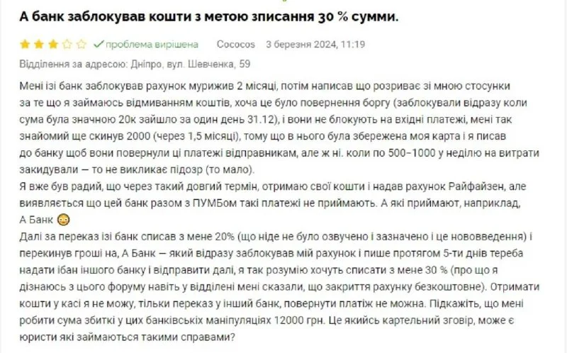 Украинцы все чаще жалуются на то, что банки взыскивают с них от 20% до 30% суммы на счете во время его принудительного закрытия.