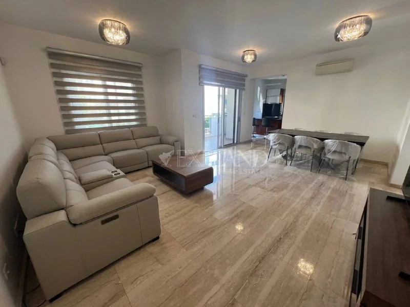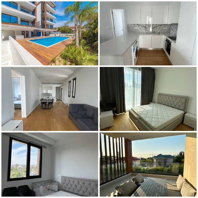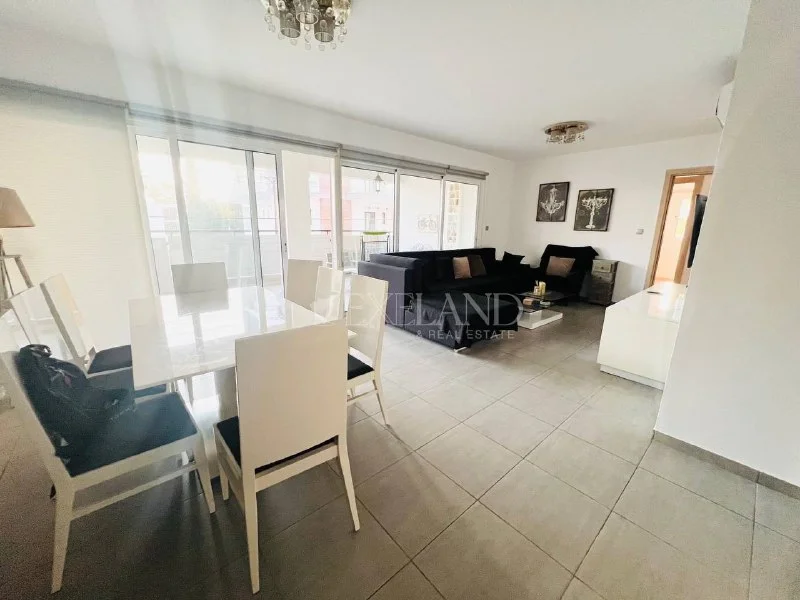 • This spacious apartments located in a newly builded complex with a swimming pool in a very quiet area of Limassol. Easy access to the highway and just 10 minutes to the city center. There are all the facilities for a happy life : - Large sofas in the living room - TV stand cabinet in the living room - Free standing cabinet - Double coffee table in the living room - Dining table with 4 chairs - Doubled bed with mattress in the master bedroom -Double bed with mattress in the guest bedroom - Two side cabinets - Bedroom cabinet - 43” TV - BOSCH washing machine - BOSCH fridge - BOSCH oven and cooker - SHARP microwave - BOSCH kettle and toaster - BOSCH dish washer - Nespresso coffee machine Also you can enjoy the swimming pool and a playground for your kids. Covered parking and a storage room.