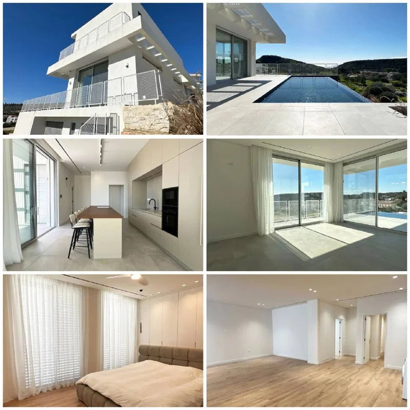 A spacious villa with panoramic sea and mountain views, located in a secluded area, just an 8-minute drive from the beach.