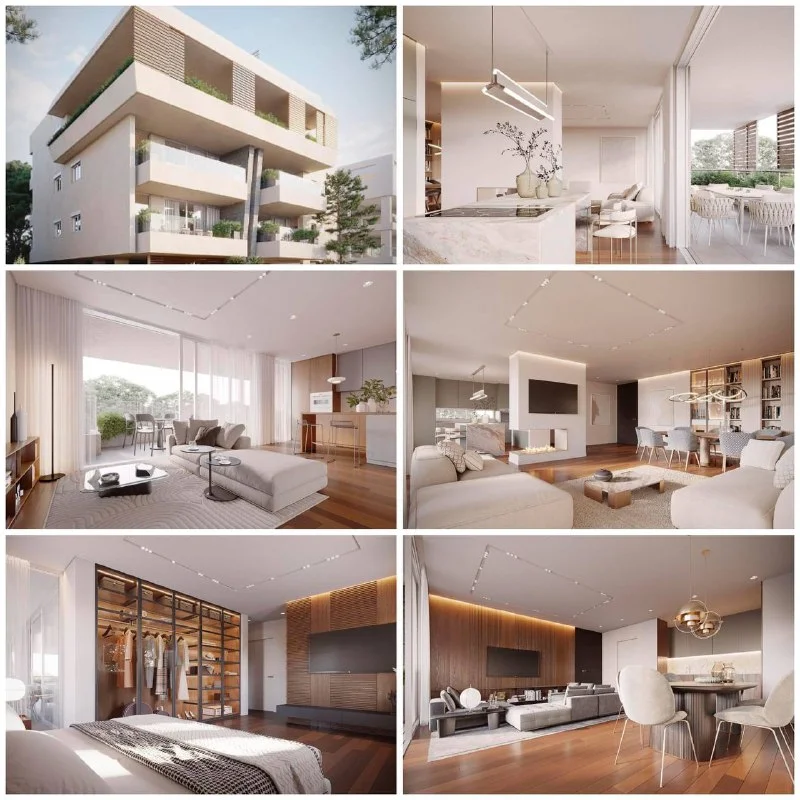 Благодаря панорамному остеклению квартиры наполнены естественным светом, а из всех квартир открывается потрясающий вид на Средиземное море и внутренний сад с бассейном.