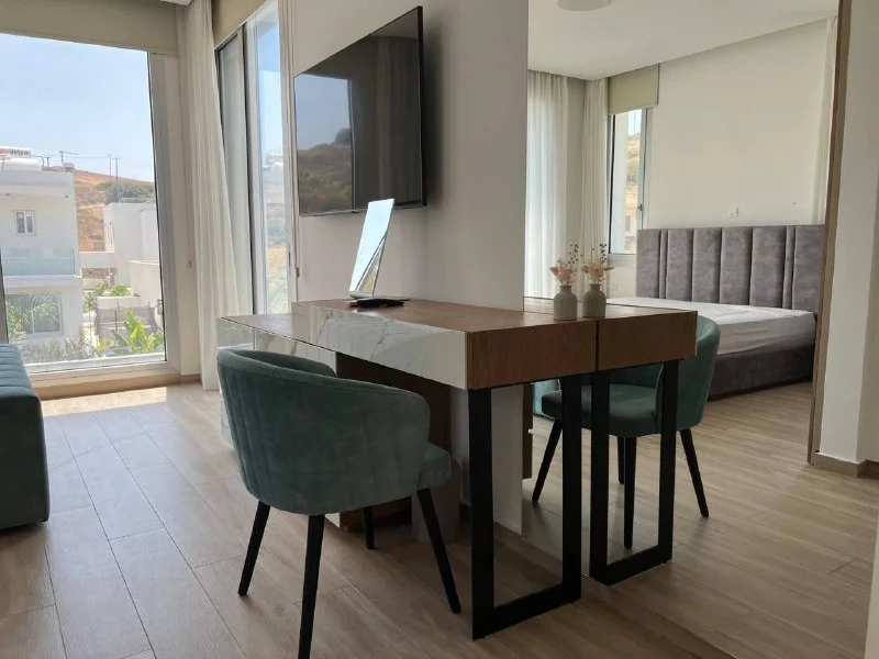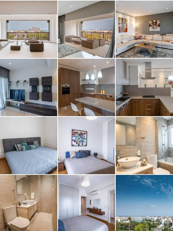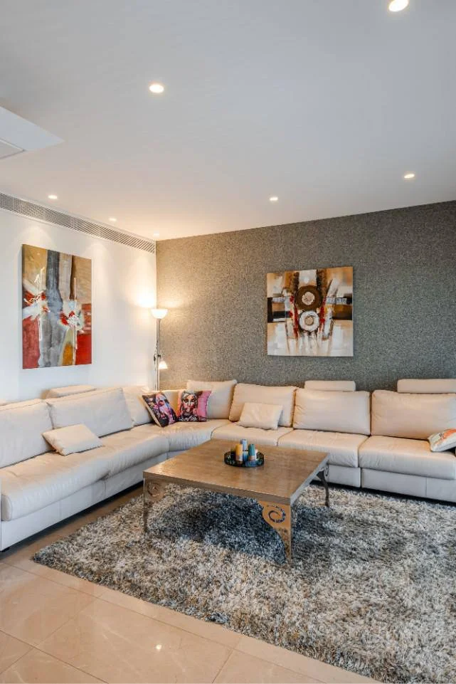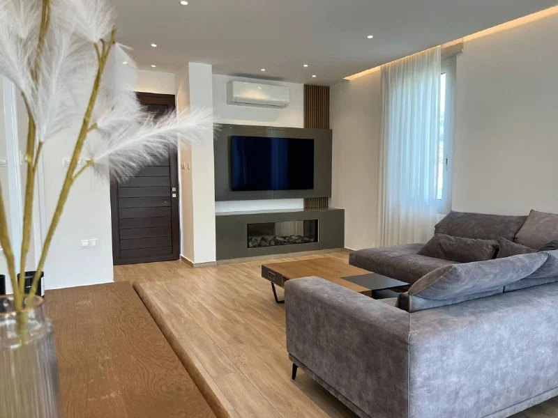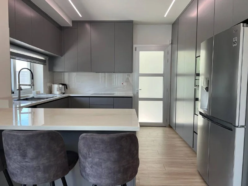 For long-term rent a stunning 2-bedroom apartment on the 3rd floor in the prestigious Nereids Residence, located just 1 minute from the sandy beach, Marina, restaurants, shops, and public transport stops.