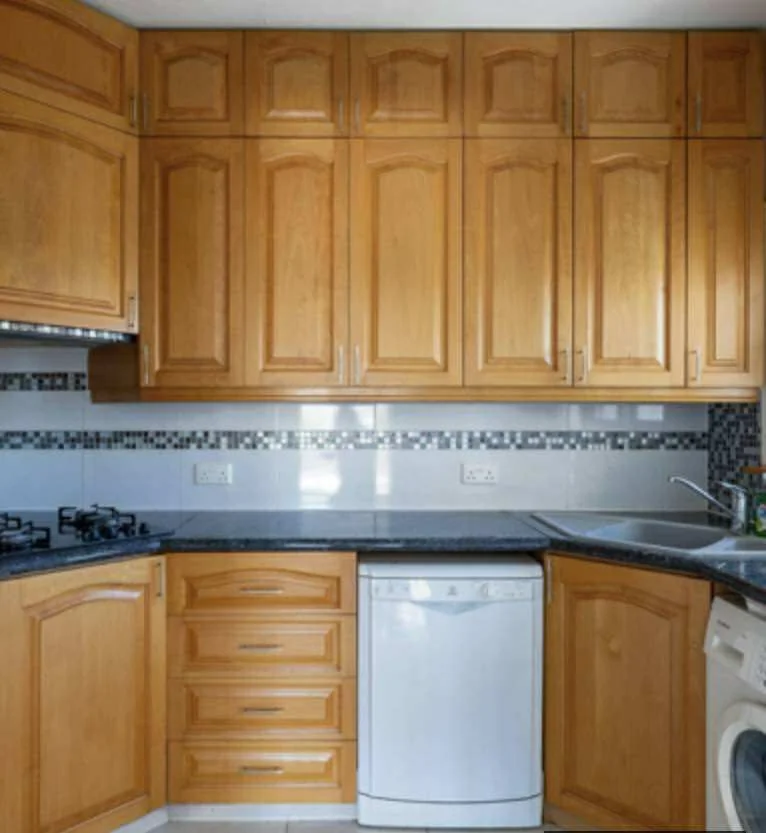 🔹️Кухня из натурального дерева с посудомоечной машиной и холодильником.