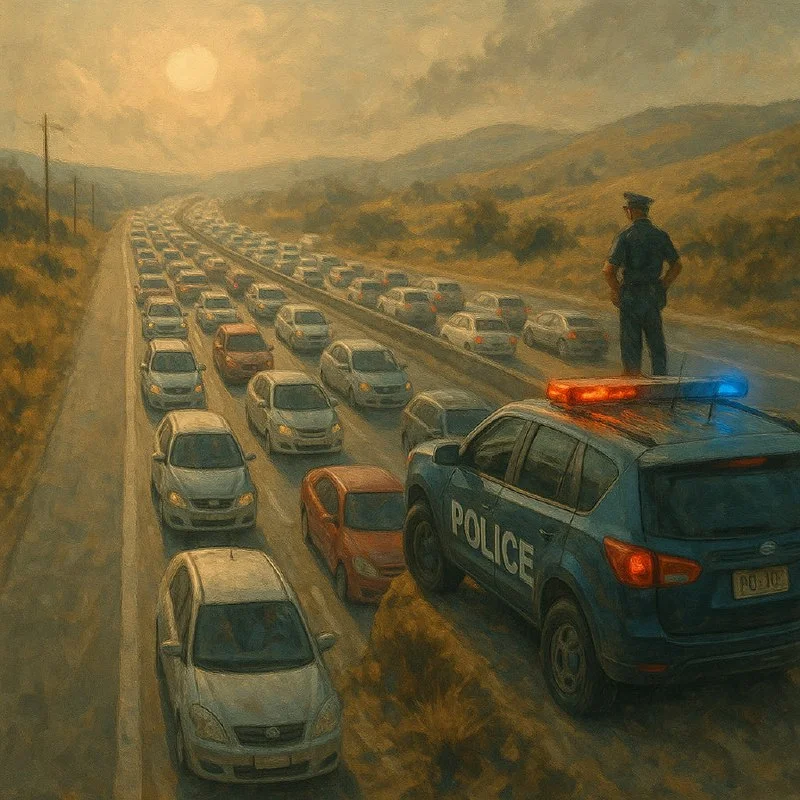 👮 Η αστυνομία καλεί τους οδηγούς να είναι προσεκτικοί λόγω της πυκνής κυκλοφορίας.