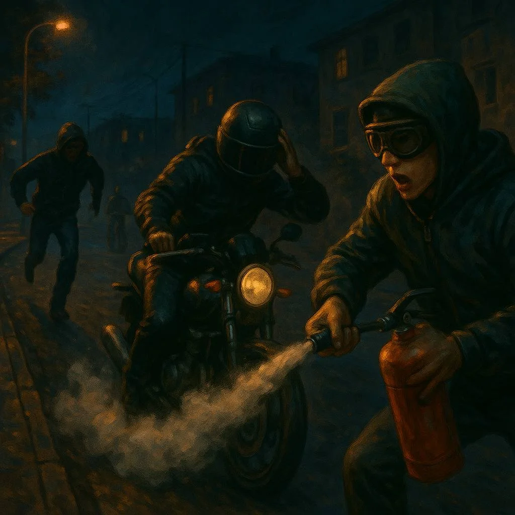 Οι δράστες, ακολουθώντας την ίδια τακτική, επιτίθεντο σε μοτοσικλετιστές και ποδηλάτες, χρησιμοποιούσαν πυροσβεστήρες και αφαιρούσαν χρήματα και ηλεκτρονικές συσκευές.