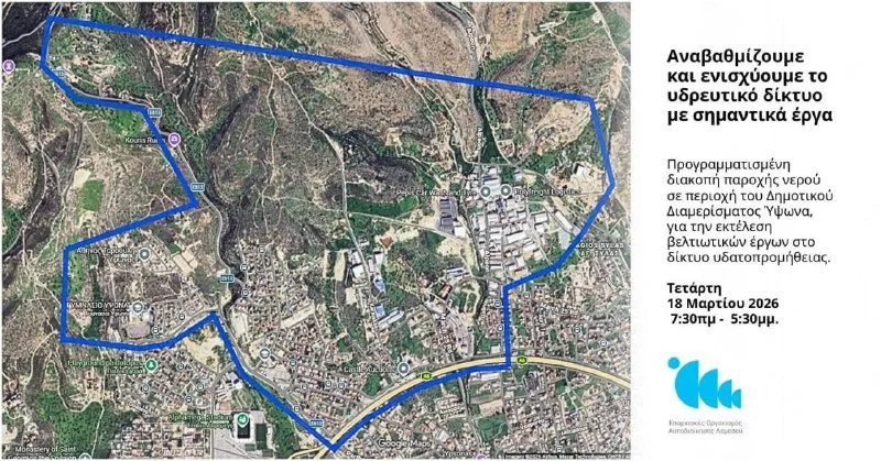 18 марта в районе Ипсонас в Лимасоле отключат воду на весь день из-за плановых работ.