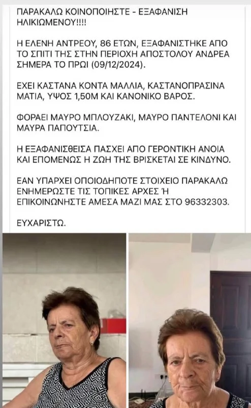 Пожилая женщина с деменцией вышла из дома и пропала. Большая просьба при наличии информации позвонить по указанному в объявлении телефону.