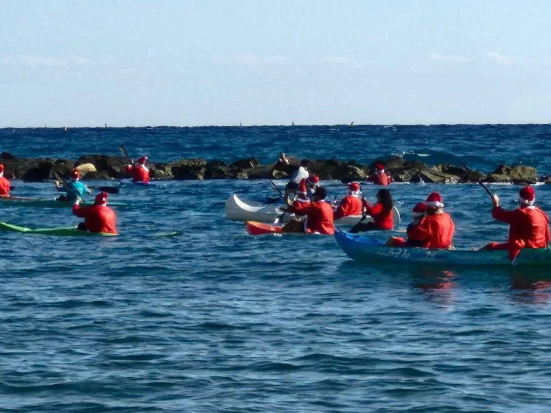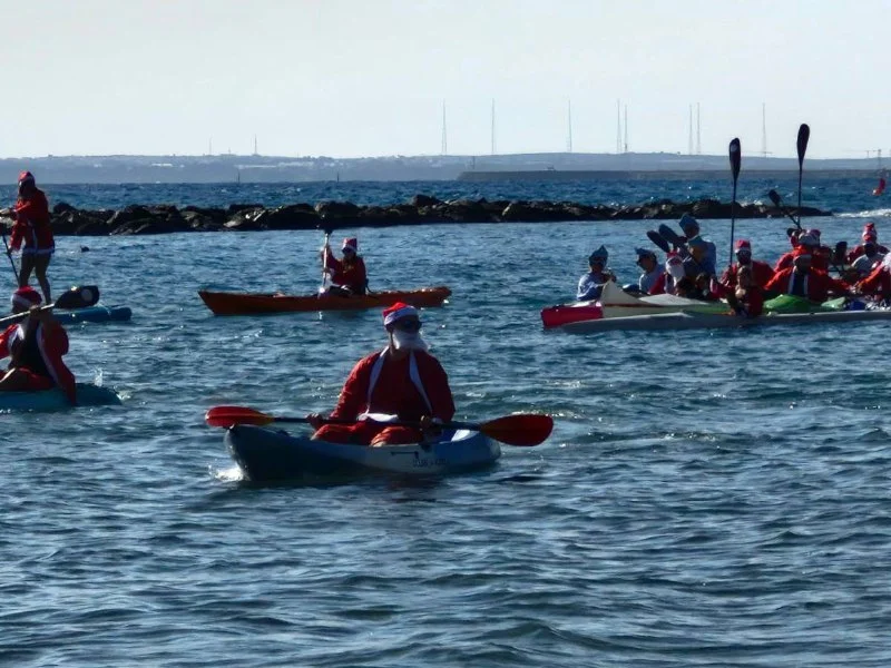 🎅🏻🎄В Лимассоле деды Морозы и Снегурочки на каяках и сапах раздавали шоколадки зрителям!