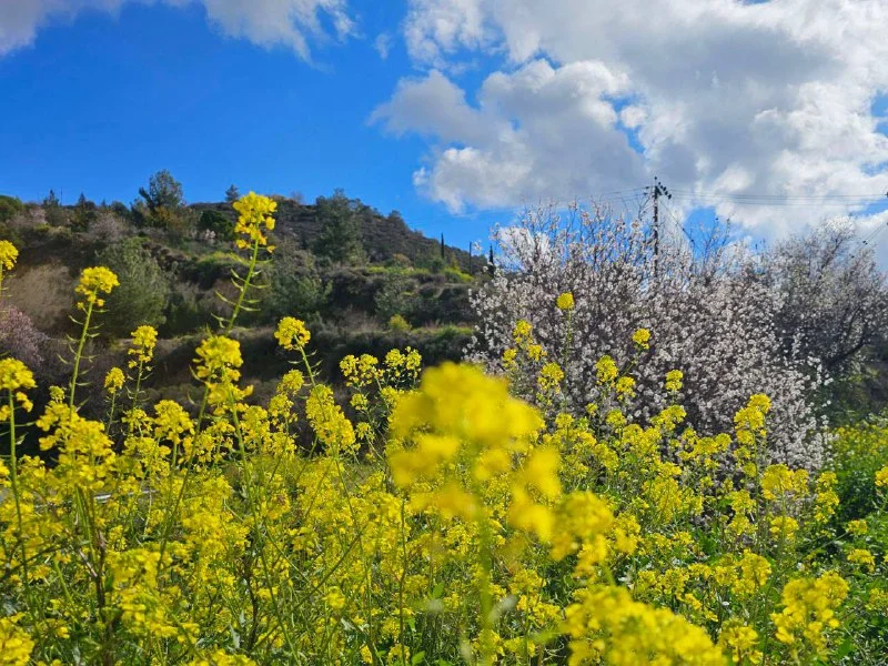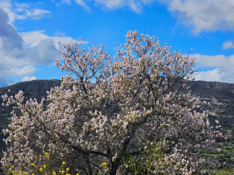 Цветущий миндаль в окрестностях Тримиклини в Троодосе.