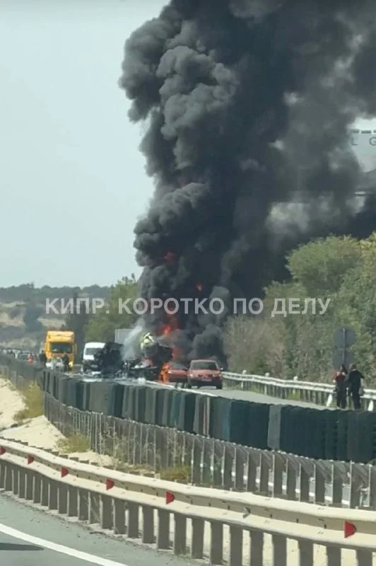 На хайвее Лимассол - Никосия большая авария. Горит автоцистерна.
