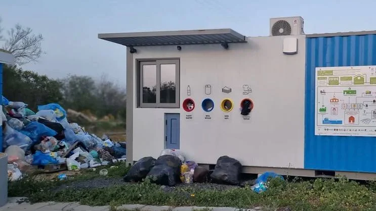 В пункте приема вторсырья в деревне Маммари копятся кучи из мусорных пакетов, которые никто не забирает.