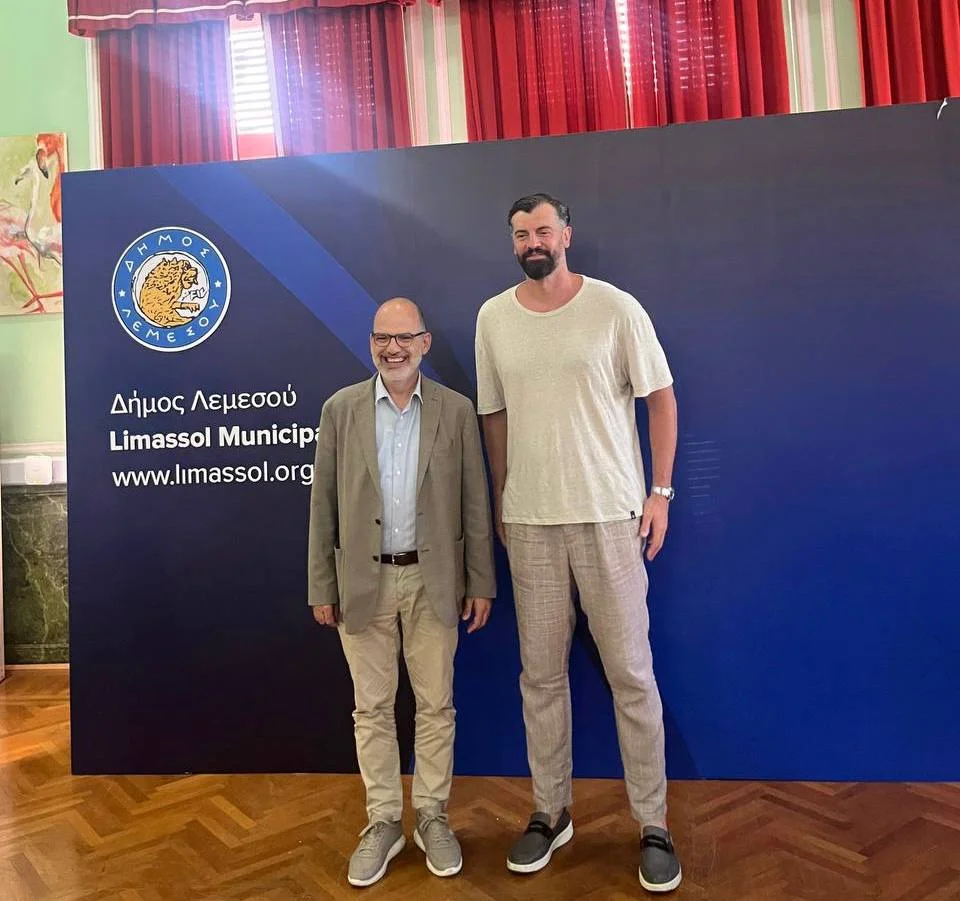 Легенда европейского баскетбола Николоз Цкитишвили встретился с мэром Лимасола в рамках подготовки к Евробаскету 2025.