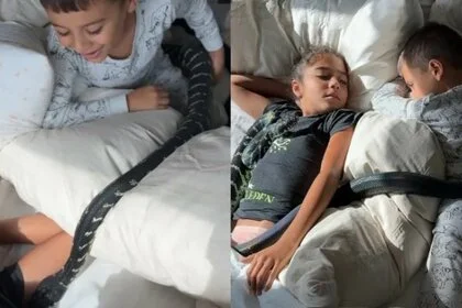 А его дети даже спят со змеями :)